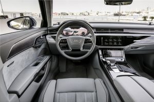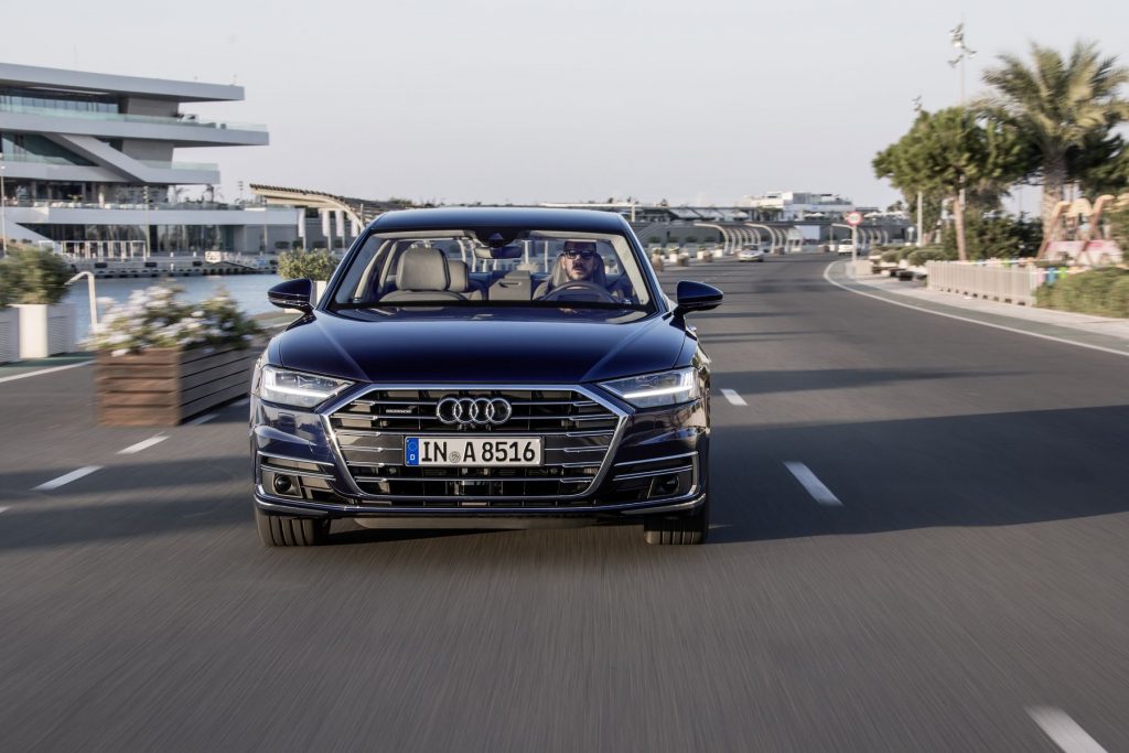 (TRD/MID) – Audi lässt mit dem neuen A8 eine rollende Kommandozentrale auf die Straße. Viel Leistung, sehr viel Sicherheit und noch mehr Technik wirken fast schon zu perfekt.Jeder dritte Mensch auf diesem Planeten hat ein Smartphone. Mit Applikationen, die das Leben erleichtern und mit Applikationen, die jedwede Art von Langeweile im Keim ersticken sollen. Attribute, die vor nicht allzu langer Zeit auch noch für die meisten Automobile galten. Ob nun für das humorlose „Von A nach B fahren“ oder zum Sporttreiben – ein Auto war und ist Lebenshilfe, Sportgerät, Partner und Arbeitsvieh zugleich. Da wundert es kaum, dass die Automobilhersteller heutzutage versuchen, die für viele noch sehr futuristisch anmutenden Tugenden eines Smartphones und die eher rationalen Fähigkeiten eines Autos möglichst effektiv miteinander zu koppeln. Audi zeigt nun an seinem neuen Flaggschiff, dem A8, dass genau das sehr gut funktionieren kann. Wenngleich die Emotionen bei all der Technik ein wenig auf der Strecke bleiben.Einer Strecke, die dank gut konturierter und sowohl beheiz- als auch belüftbarer Sitze eigentlich kein Ende haben muss. Wer das Glück hat, sich im Fond des zwei Tonnen schweren und 5,17 Meter langen Audi A8 55 TFSI chauffieren zu lassen, kann auch gleich noch die Massagefunktionen und den Touch-Fernseher zum Leben erwecken. Per herausnehmbarem und ebenfalls berührungsempfindlichen Bedienelements, lassen sich von dort hinten Lichtleisten, Lichtpunkte, Sonnenblenden und noch vieles mehr intuitiv und nicht immer zur Freude des Fahrers unaufhörlich konfigurieren und verändern. Zumindest auf Tastentöne hat Audi zugunsten der Nerven der Erste-Reihe-Sitzenden verzichtet.