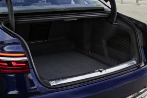 Auf nahezu nichts verzichten, außer auf eine sportlich akustische Rückmeldung des 3,0 Liter V6-Benzinmotors, muss hingegen der Fahrer. Das Cockpit ist auf ihn zugeschnitten wie das eines modernen Learjets. Erfühlbare Tasten oder Schalter sind nahezu ausgestorben. Das gilt im Übrigen auch für die Lüftungsschlitz-Bedienrädchen, die nun auch per Touch-Flächen angesteuert werden. Bei kompletter Deaktivierung verschwinden die Lüftungsgitter sehenswert inszeniert hinter einer edlen Verblendung – einer der letzten mechanischen Hingucker in dieser ab 93.500 Euro teuren fünftürigen Luxuslimousine.
