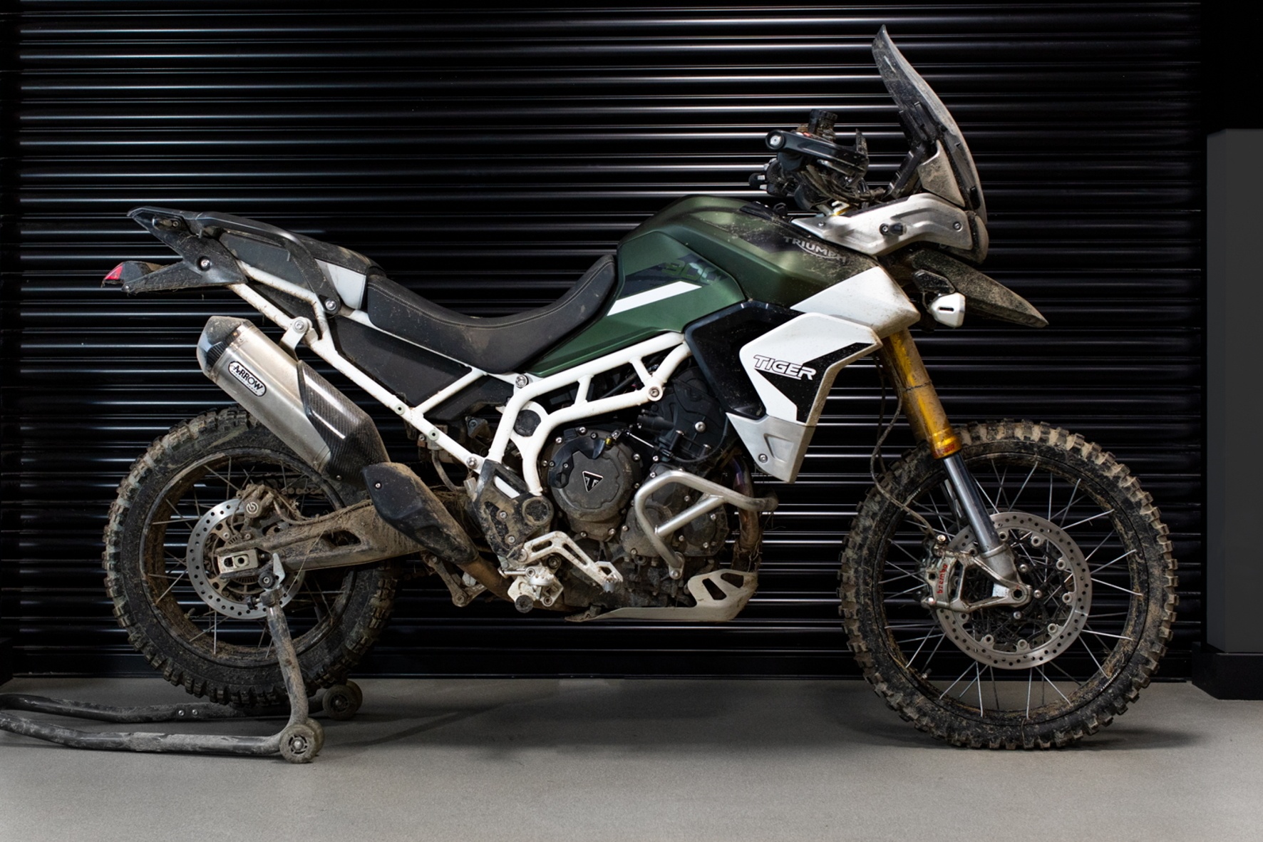 Dafür entwickelte die Mannschaft vom Triumph-Design-Workshop zusammen mit dem Bond-Stuntteam auf Basis der Tiger 900 und der Scrambler 1200 mehrere spezielle Film-Motorräder, die für extreme Stunts und Action-Sequenzen fit gemacht wurden.