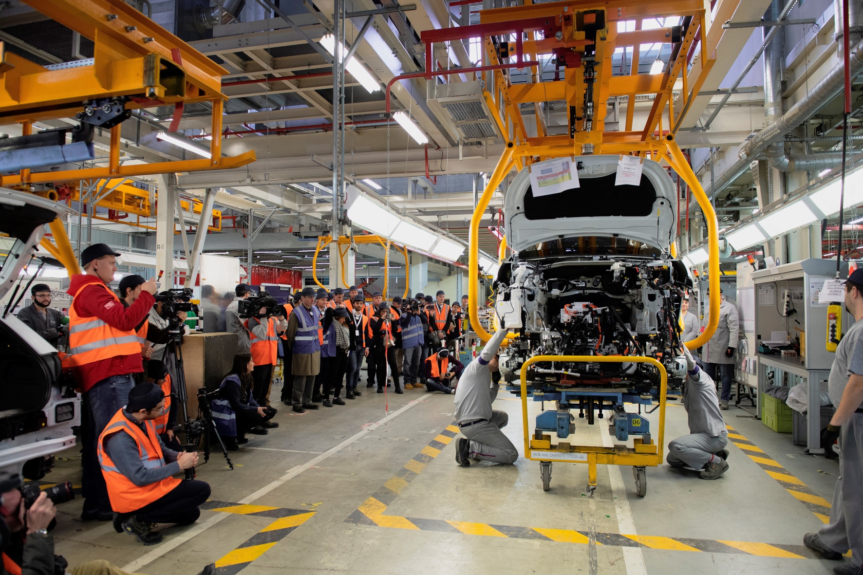 Eine Handvoll Fachjournalisten war eingeladen worden, um den Umstellungsprozess vom bisherigen zum künftigen Peugeot 208 mitzuerleben. Der Serienanlauf eines neuen Modells ist an jedem Fließband eine aufregende Sache. So wundert es nicht, dass an diesem winterlich kalten Februartag nur vier Fahrzeuge der 208-Vorserie in die Tagesroutine eingeschleust werden. Man merkt den Mitarbeitern die Nervosität an, wenn einer der Neulinge zwischen den vertrauten, aktuellen C3-Modellen auftaucht. Selbst der Roboter fühlt sich wohl für einen Moment überfordert: Die frisch von unten ins Auto eingesetzte Vorderachse samt Motor muss noch einmal gelöst und neu fixiert werden.