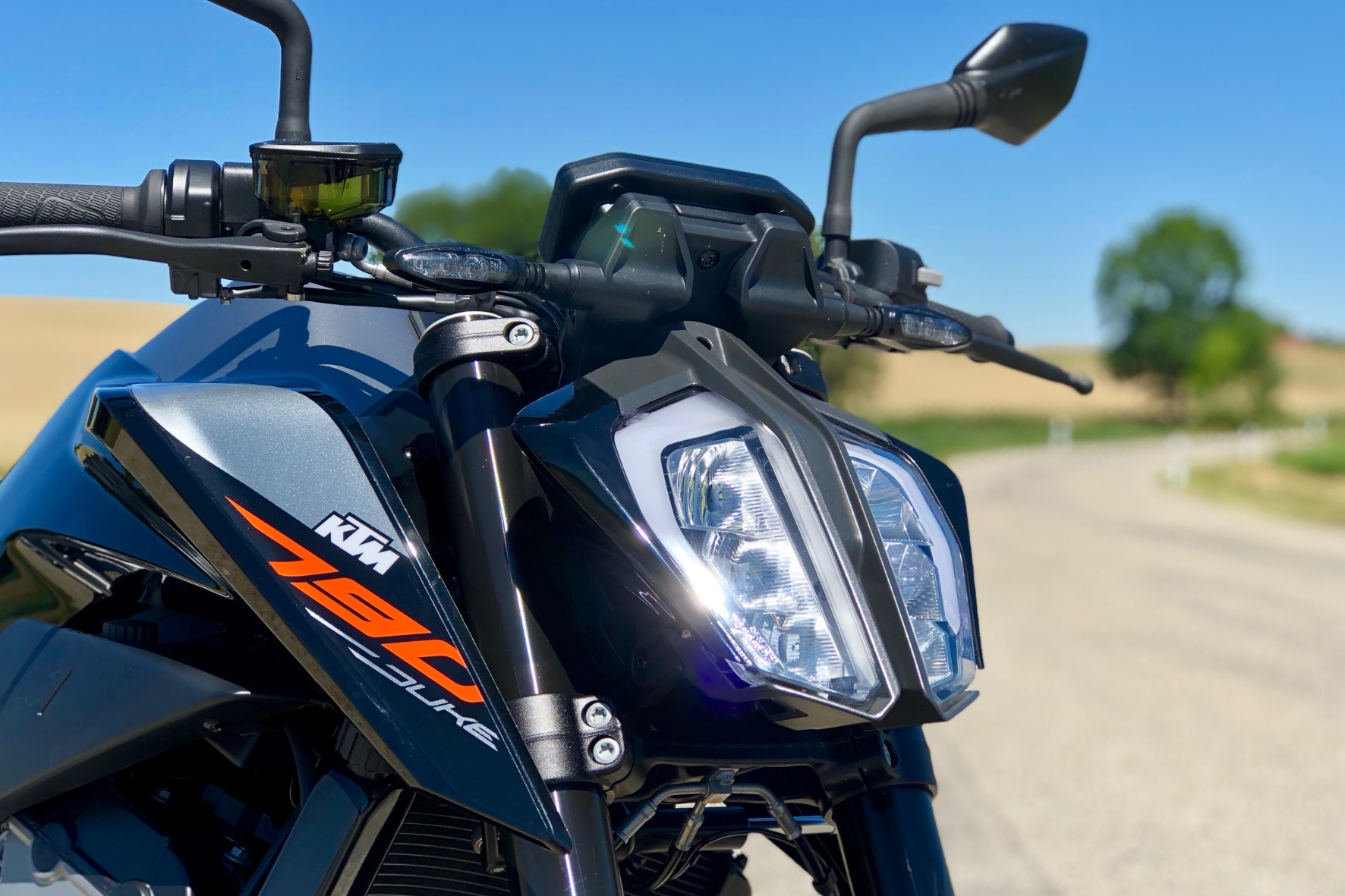 Ebenso erfreulich: Bis knapp 1,90 Meter Körpergröße hat man auf der 790er bequem Platz, dank 825 mm Sitzhöhe und 1.475 mm Radstand. Über den breiten Lenker hat man das Naked Bike immer gut im Griff und kann es spielerisch um scharfe Ecken dirigieren. Trotz dieser Agilität fühlt man sich im Sattel der 790 Duke auch in schnellen Landstraßenkurven sicher und wohl. Und selbst hohes Autobahntempo bringt die Österreicherin hinter sich, ohne etwa mit Hochgeschwindigkeits-Pendeln zu nerven. Gewöhnungsbedürftig ist anfangs nur, dass sie in jede Schräglage geradezu hineinfällt. Aber auch daran gewöhnt sich der frischgebackene Duke-Fahrer sehr schnell und genießt am Ende die Leichtigkeit des Kurvenfahrens.
