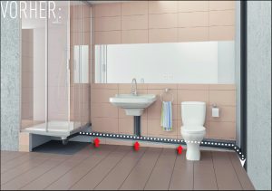 Die hohe Duschwanne gewährleistet das nötige Ablaufgefälle für das Duschwasser. Barrierefrei ist sicherer und mit dem Plancofix auch im Altbau möglich. Foto: Pentair Jung Pumpen/trd Bauen und Wohnen