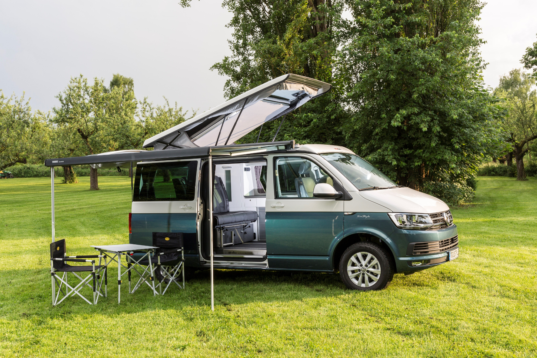 Viele Lösungen bringen all das unter einem Hubdach unter, ein Waschraum lässt sich dagegen meist nur mit einem festen Hochdach realisieren. Das aber unterbindet die Zufahrt in eine Tiefgarage grundsätzlich. Schon der aktuelle California darf mit einer Höhe je nach Motorisierung und Fahrwerk bis zu 2,03 Meter nicht mehr in jedes Parkhaus. Kenner wählen daher eine Luftfederung, mit der die Fahrzeughöhe bei langsamer Fahrt (wie sie in der Tiefgarage angeraten ist) um das entscheidende Maß absenken lässt. Die jedoch verteuert den Campingbus zusätzlich. Die perfekte Konfiguration eines Camper-Vans ist eben Nobelpreis-verdächtig.