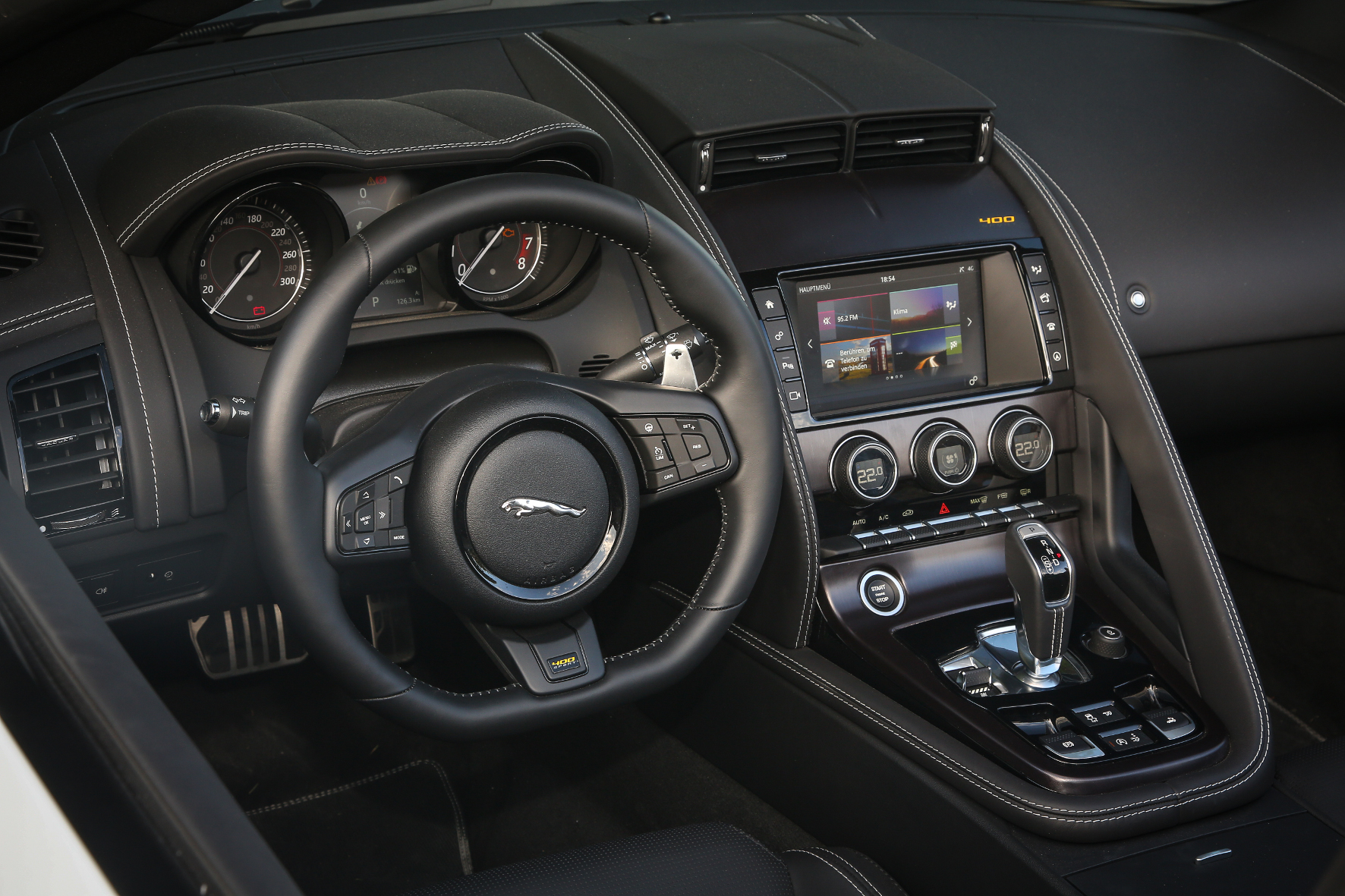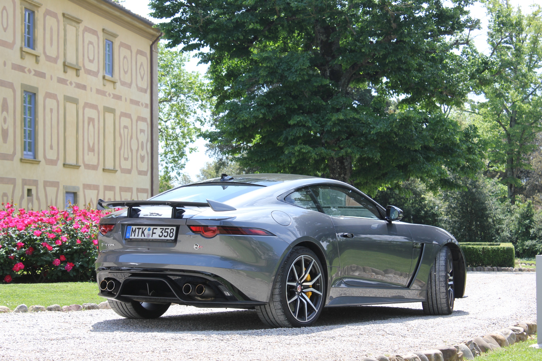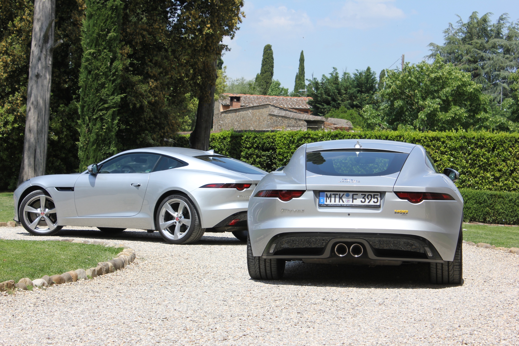 Als besonderes Schmankerl legt Jaguar schon jetzt die auf ein Produktionsjahr limitierte Edition „400 Sport“ mit reichhaltigerer Ausstattung und mehr Leistung als Coupé und Cabrio auf. Zum Preis ab 99.350 Euro sind bei dem Sondermodell etwa das Premium-Lederpaket, Alu-Schaltwippen für die obligatorische Achtgang-Automatik und 20 statt 19 Zoll große Alu-Räder inklusive. Der von einem Kompressor befeuerte 3,0-Liter-V6 leistet hier glatte 400 PS und leitet seine Kraft wahlweise an die Hinterräder oder an alle Viere weiter, die Sechszylinder mit 340 und 380 PS bleiben im Programm. Darüber rangieren weiterhin die Varianten mit 5,0-Liter-V8 – der F-Type R mit 550 PS (ab 116.200 Euro) und der SVR mit 575 PS (ab 139.400 Euro). Neben dem 400 Sport als Coupé und Cabrio waren bei der Italien-Rundfahrt das Top-Modell und der 380-PS-V6 mit von der Partie.