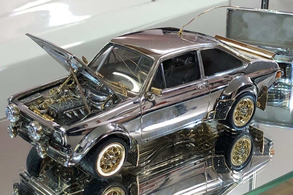 Dieses Modellauto ist ein Traum für jeden Sammler. Der Ford Escort im Maßstab 1:25, ein Meisterwerk des britischen Juweliers Russell Lord, ist hauptsächlich aus Silber, Gold und Diamanten handgefertigt. Vor 25 Jahren begann er mit diesem Modellprojekt und hat seitdem tausende Stunden in die Vollendung dieser wertvollen Miniatur investiert.