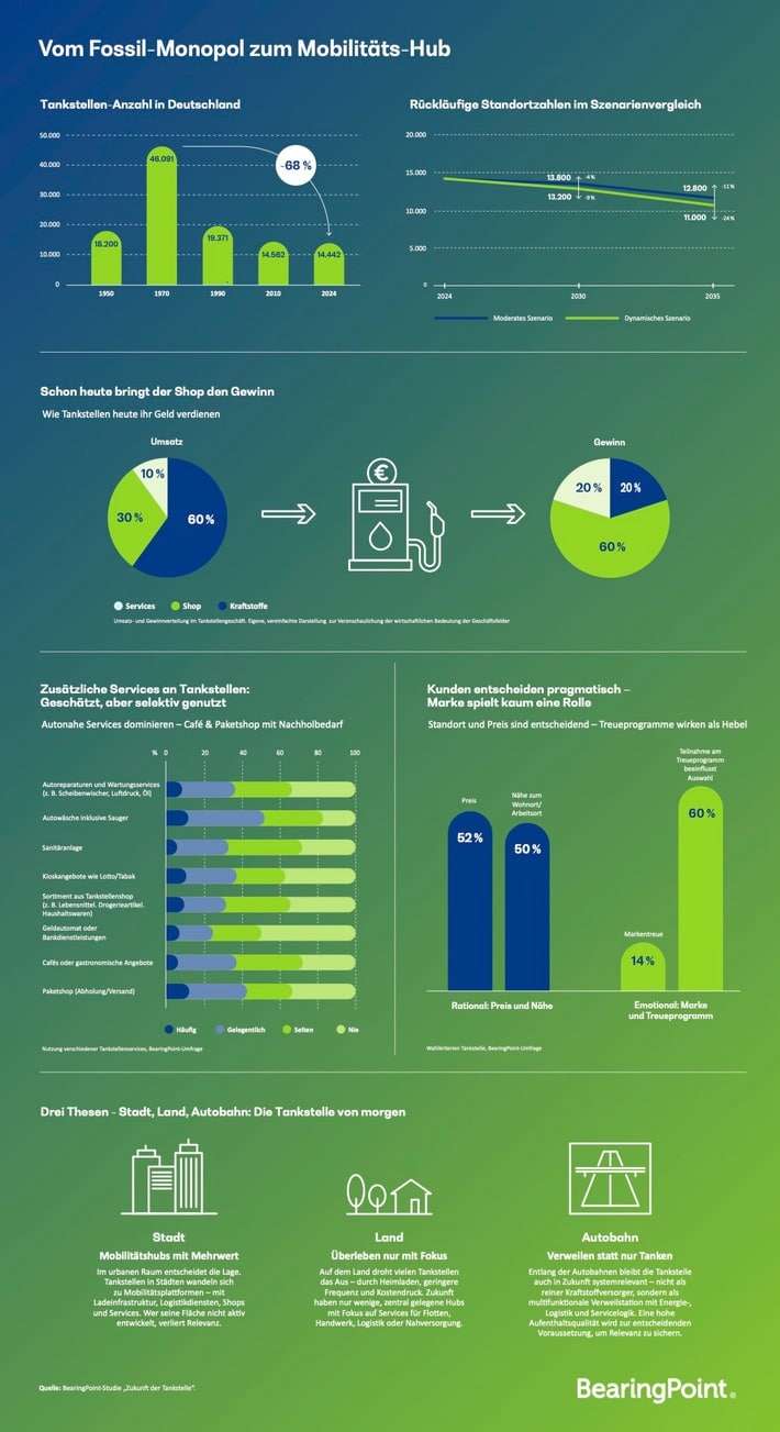 – **Stadt**: Tankstellen werden zu multimodalen Mobilitätsknoten mit Fokus auf Elektromobilität und digitale Services.