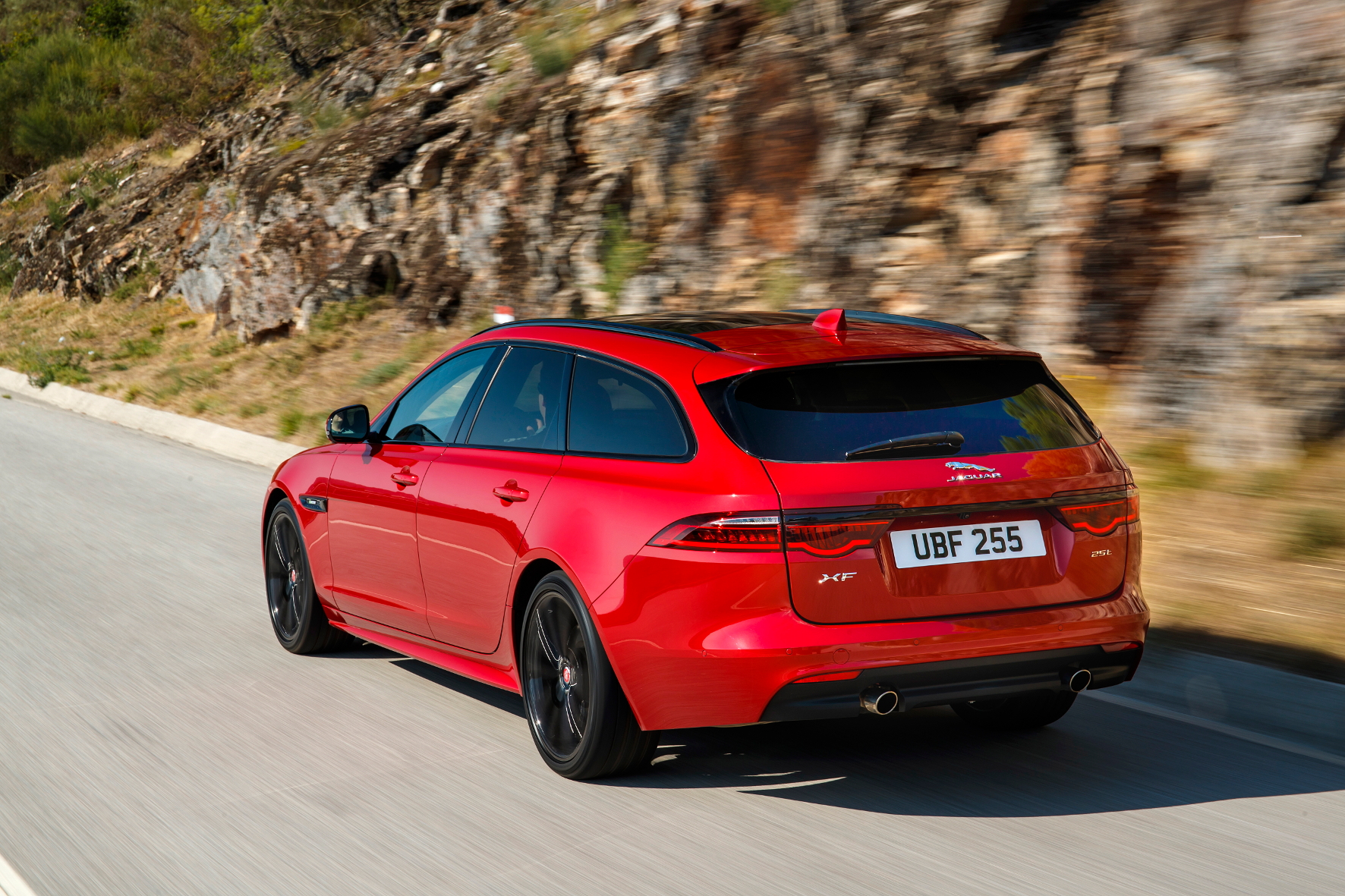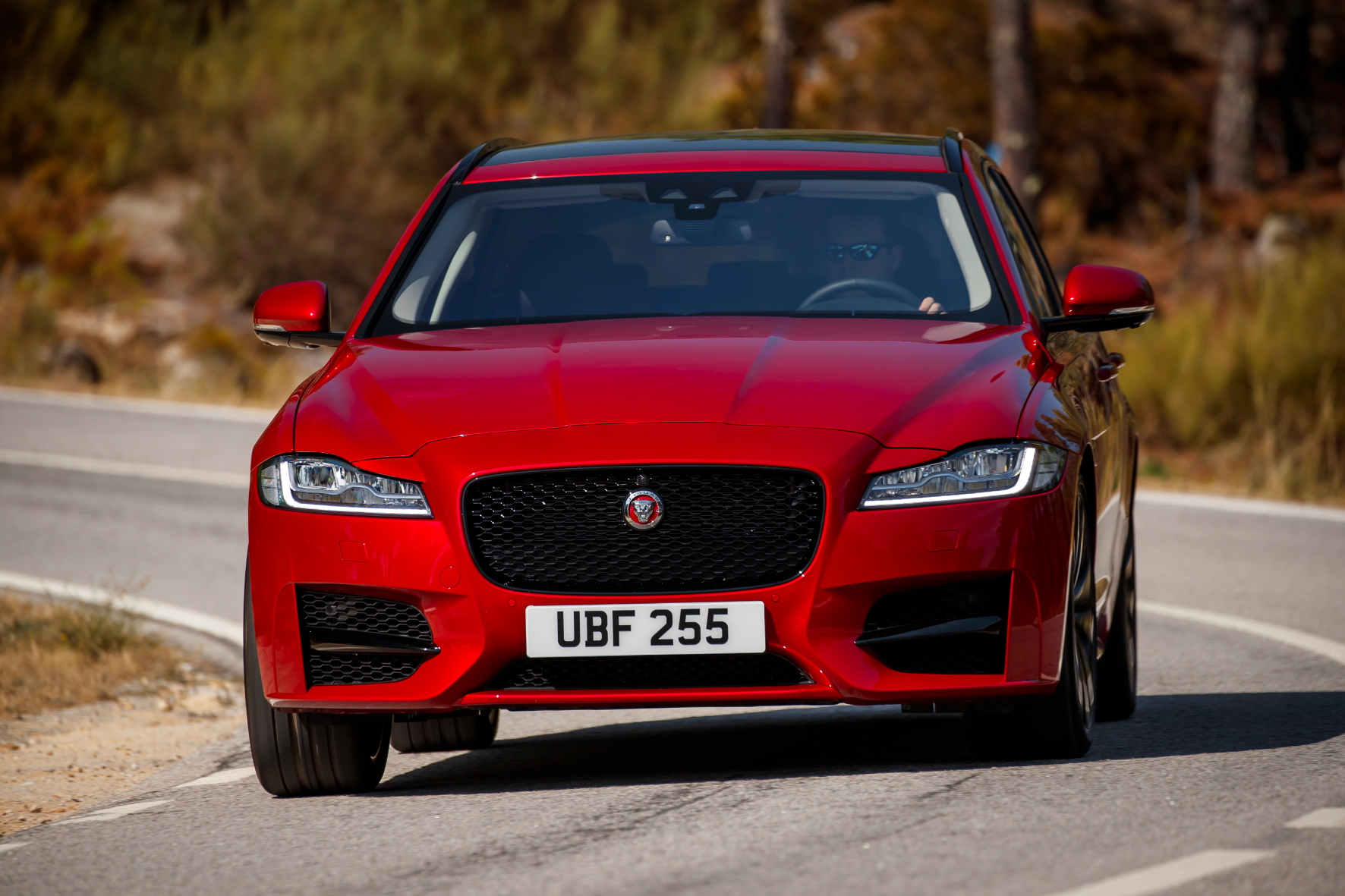 Der XF Sportbrake rollt mit fünf Motor-Alternativen an den Start: vier Diesel und ein Benziner. Die Leistungsspanne der Vier- und Sechszylinder reicht von 163 PS bis 300 PS. Um der derzeit auf breiter Front geführten Treibjagd auf den Diesel zu entgehen, widmeten wir unser Interesse bei der Fahrpräsentation in Portugal speziell dem Turbo-Benziner, der mit 250 PS zu Werke geht. Der aufgeladene Vierzylinder wird spielend mit den rund 1,8 Tonnen Leergewicht fertig. Für den Sprint aus dem Stand vergehen nur 7,1 Sekunden, bis die Tachonadel bei 100 km/h ankommt. Der Tatendurst des Motors findet erst dann seine Deckelung, wenn der Edelfrachter Tempo 241 erreicht hat. Der XF mit Ottomotor verlässt die Werkshallen ausschließlich mit jeweils mit Achtgang-Automatik und Heckantrieb.