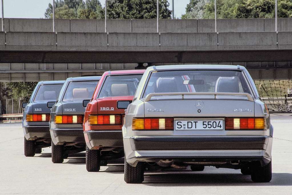 Nach dem Start mit den beiden Ottomotortypen wird die Motorenpalette kontinuierlich erweitert. Bereits 1983 erscheint eine Dieselvariante, der 190 D. Der sportliche Sechzehnventiler 190 E 2.3-16 und seine Nachfolger sind ab 1984 im Verkaufsprogramm und im Motorsport erfolgreich. Vor allem in der Deutschen Tourenwagen-Meisterschaft (DTM) gewinnen sie Rennen und Titel.