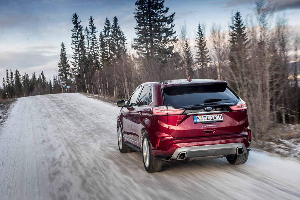 Mit dem Assistenz-Paket „Ford CoPilot360“ ist der Edge bereit für teilautonomes Fahren: Unter anderem ist gekoppelt mit dem aktiven Abstandstempomat ACC ein Stau-Assistent an Bord sowie ein Spurhalte-Assistent, der das SUV bis 200 km/h in der Mitte der Spur halten kann. Der der neue Ausweich-Assistent erkennt langsamere oder stehende Fahrzeuge und unterstützt durch aktiven Lenkeingriff Ausweichmanöver. Dazu bietet Ford unter anderem einen Totwinkel-Assistenten, Pre-Collision-Assist mit Fußgänger-Erkennung, Verkehrsschild-Erkennung und adaptive Lichttechnik an.