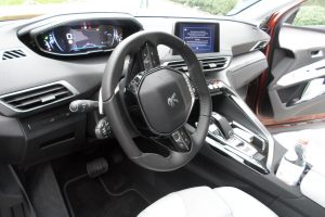 Auch vorne geht es geräumig zu, wer sich bei der Ausstattung etwas gönnt, kann sich seine Rückseite nicht nur wärmen, sondern auch massieren lassen – sehr angenehm. Der Fahrer muss sich auf den ersten Kilometern erst einmal eingewöhnen, denn das oben wie unten abgeflachte Lenkrad ist wirklich sehr klein ausgefallen. In Mittelstellung gewährt es dafür einen freien Blick auf das sogenannte i-Cockpit, das sich in fünf Modi ganz nach den Wünschen und Bedürfnissen des Piloten einstellen lässt – eine wirklich coole Sache, die im Gegensatz zu deutschen Mitbewerbern zur Serienausstattung gehört. Und auch bei der Vernetzung mit dem Smartphone und den Assistenzsystemen kann der 3008 mithalten – vom Spurhalte- bis zum Toter-Winkel-Assistenten.