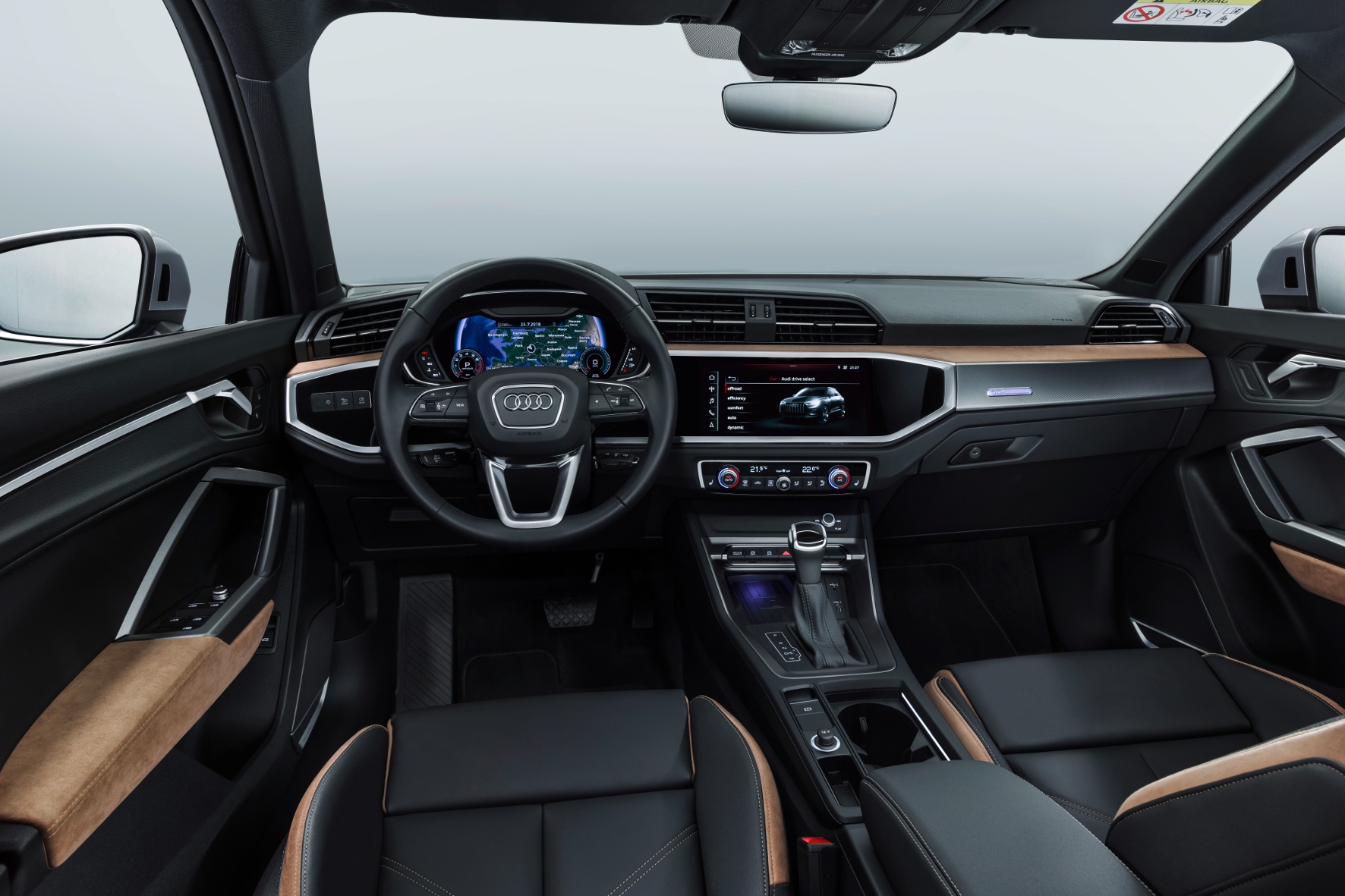 Vor allem junge Familien und Aufsteiger von Golf, A3 und Co., so hofft man bei Audi, wissen das neue Angebot zu goutieren. Am meisten profitiert aber Papa oder Mama hinter dem Lenkrad von der Neugestaltung des Q3: Die Mittelkonsole ist, wie in anderen neuen Modellen aus Ingolstadt, nun deutlich Richtung Fahrer geneigt und lässt keinen Zweifel zu, wer der Chef an Bord ist. Der Commander blickt natürlich auf das Audi-typische voll digitale Cockpit, das sich gegen Aufpreis zum größeren High-Tech-Instrument aufrüsten lässt. In der Mittelkonsole sind haptische Tasten nahezu abgeschafft, ebenso von aus früheren Modellen gewohnte zentrale Dreh- und Drückknöpfe – auch Audi setzt ja bekanntlich nun auch voll auf Bedienung à la iPad.