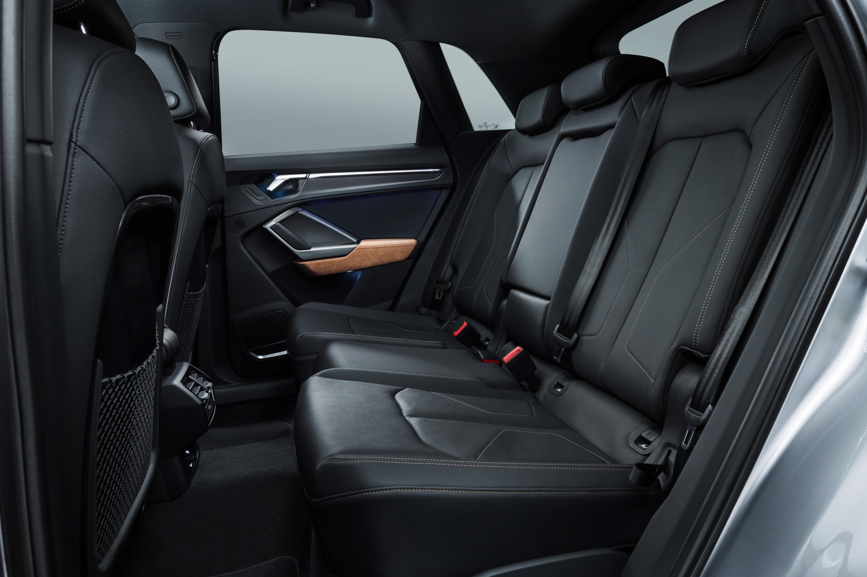 Die vergrößerten Maße sind auch im Innenraum zu spüren, überall gibt es nun deutlich mehr Platz. Dank des um 78 Millimeter auf 2,68 Meter verlängerten Radstandes sind die Fond-Plätze künftig richtig gut nutzbar: Der Q3 wächst zum vollwertigen Mover für die vierköpfige Familie. Der hintere Mittelsitz bleibt die klassenübliche Notlösung. Die Anmutung der verbauten Materialien liegt nahezu auf dem Level des Audi Q5.