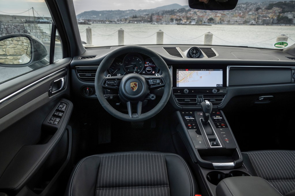 Ebenfalls Serie ist das Multifunktions-Lenkrad mit Heizung und die Sport-Chrono-Uhr oben am Armaturenbrett. Und drunter thront wie bei allen Macan-Versionen der nach heutigen Maßstäben fast schon bescheiden dimensionierte 10,9-Zoll-Touchscreeen fürs Porsche Communications-Management inklusive Online-Navigation.