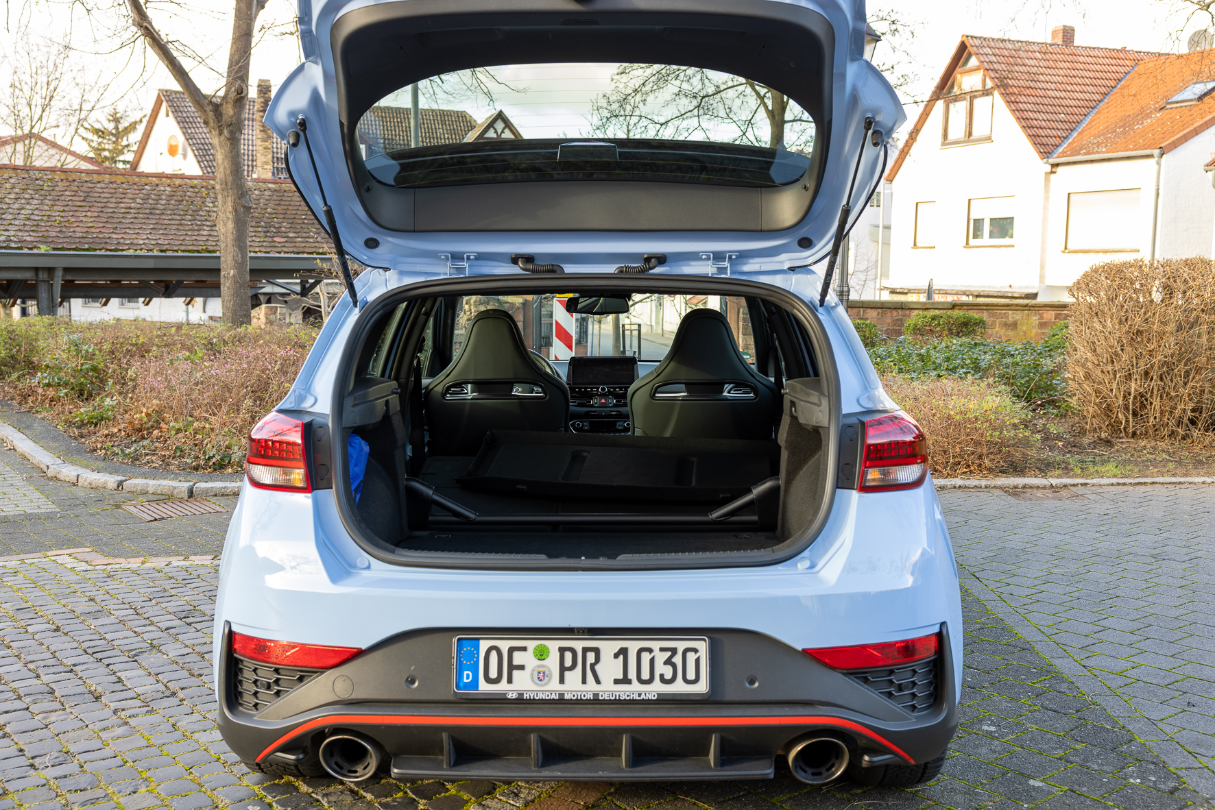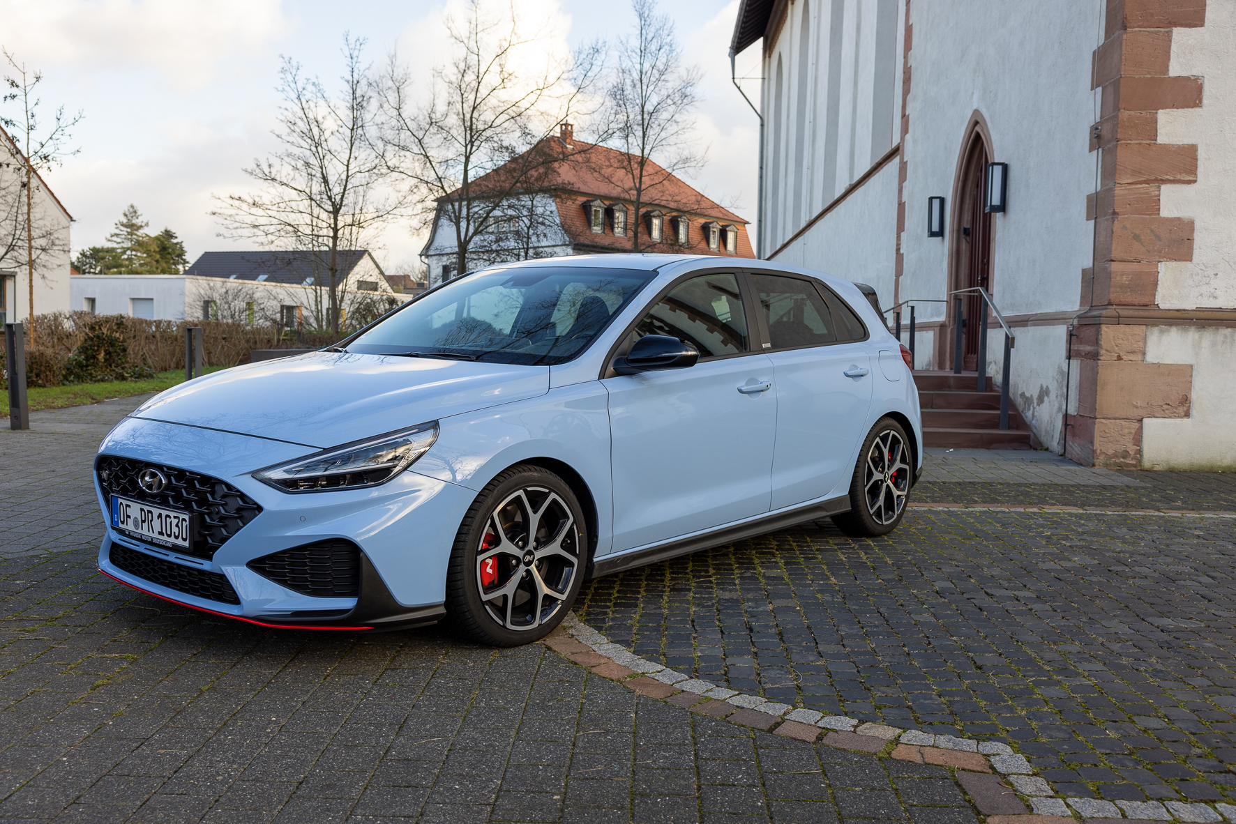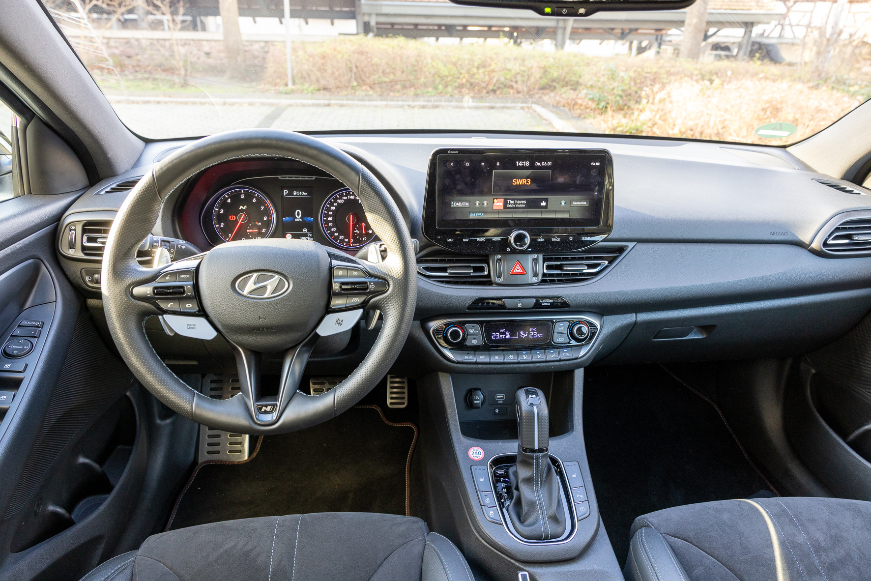 Der kleinere Bruder i20 N ist dank kürzerem Radstand etwas agiler in Kurven, dieses kleine Defizit gleicht der i30 N aber mit seiner Mehrleistung sehr gut aus. Im Innenraum fallen sofort das neue 10,25 Zoll Infotainment Touch-Display und die bequemen Sport-Schalensitze, welche einen super Halt bieten, mit beleuchtetem N-Logo ins Auge. Die Sitze und das Lenkrad sind beheizbar und sorgen für ein wohliges Gefühl in der kalten Jahreszeit. Generell ist die allgemeine Verarbeitungsqualität sehr positiv zu nennen, ein kleiner Kritikpunkt sind lediglich die Plastikverkleidungen der Türen, mehr wegen der Materialwahl, weniger wegen der Verarbeitung.