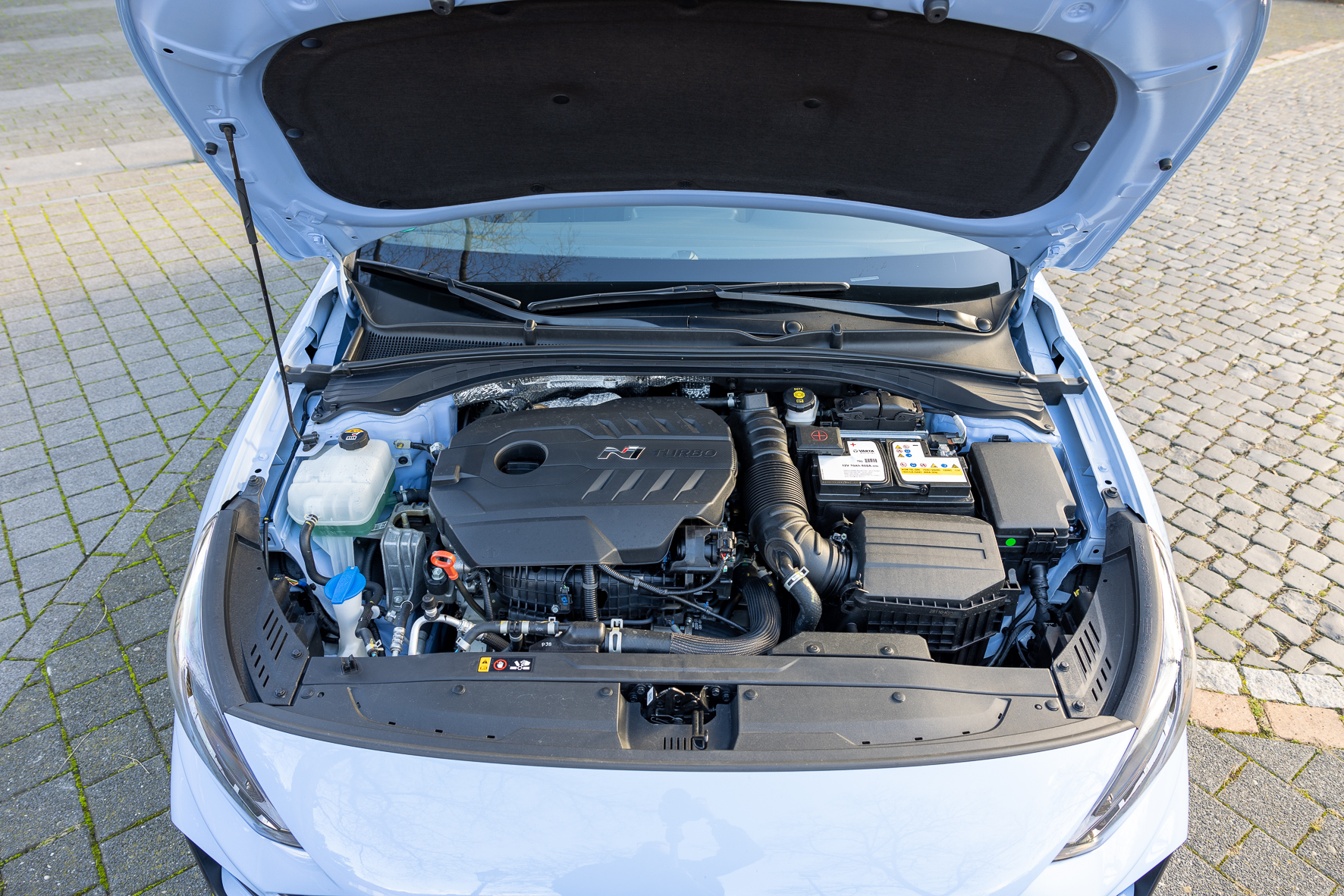 Unter der Haube gab es ebenfalls kleinere Anpassungen. Der zwei Liter Hubraum fassende 4-Zylinder Turbomotor leistet nun 206 kW/280 PS bei 5.500 – 6.000 U/min und maximal 392 Nm Drehmoment zwischen 2.100 – 4.700 U/min. Durch Anpassung des Drehzahlverhaltens ergibt das ein Plus von fünf PS und 14 Nm im Vergleich zum Pre-Facelift. Die Höchstgeschwindigkeit des Frontangetriebenen i30 N liegt bei 250 km/h, der Spurt von 0 – 100 vergeht in flotten 5,4 Sekunden.