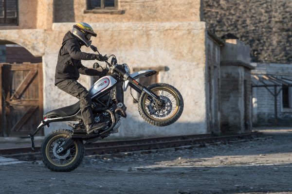 Als Mitglied der Volkswagen-Familie und Audi-Tochter hat Ducati nicht nur eine gewaltige Innovationskraft entwickelt, sondern auch einen Riecher für Trends bewiesen. Die noch junge Ducati Scrambler hat als leicht fahrbares Retro-Bike voll eingeschlagen und ist bereits das meistverkaufte Bike der Italiener – momentan und in Relation zu den Produktionsjahren auch aller Zeiten. Dass auf die erste Ducati Scrambler mit 803 ccm Hubraum und 55 kW/75 PS Leistung (optional 48 PS für den Einsteiger-Führerschein A2) weitere Ableger folgen würden, war klar. Nach der kleineren Sixty2 mit 399 ccm und 30 kW/41 PS ist dies 2017 die neue Scrambler Desert Sled: Mit 19 Zoll großem Vorderrad, längeren Federwegen, verstärktem Rahmen und goldenen Felgen wirkt sie auf den ersten Blick wie eine Neuauflage der 80 Jahre-Ikone Yamaha XT500. 10.990 Euro beträgt ihr stolzer Preis. Die erhebliche Sitzhöhe von 860 mm übertrifft die der Scambler deutlich (790/770 mm), lässt sich aber durch eine Zubehör-Sitzbank auf 840 mm senken.