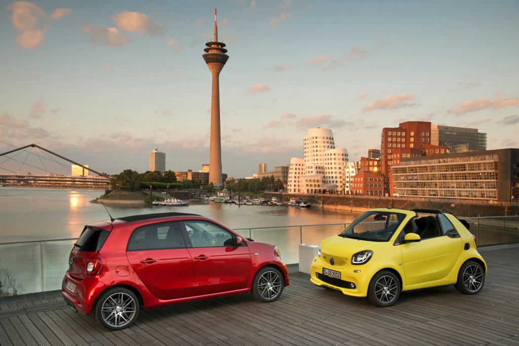 Doch in der Welt der Smart bildet das vom Daimler-Kooperationspartner Brabus veredelte Neulings-Trio die Speerspitze: So stark wie diese Modelle war noch kein serienmäßiger Smart. Denn Nennleistung und maximales Drehmoment stiegen im Vergleich zum Vorgänger um 5 kW/7 PS beziehungsweise 23 Nm auf 80 kW/109 PS bei 5.750/min und 170 Nm bei 2.000/min. Entsprechend beachtlich sind die Fahrleistungen: So beschleunigt der Zweitürer „fortwo“ in 9,5 Sekunden von 0 auf 100 km/h, und der etwas größere Viertürer „forfour“ ist bis zu 180 km/h schnell, beschleunigt allerdings aufgrund seines höheren Gewichts mit einem Wert von 10,5 Sekunden für den Standardsprint etwas behäbiger.