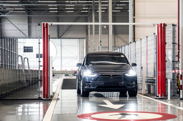 Tilburg hat einen Binnenhafen, Schiffe bringen die Container mit je drei arrangierten Model X oder vier Model S bis auf 500 Meter an die Fabriktore heran. Den Rest erledigen Lkw. „Die Fahrzeuge sind im Schnitt 24 Stunden bei uns in der Factory“, berichtet ein Tesla-Mitarbeiter. Das bedeutet ein strammes Programm für die Montagearbeiter. Für Laien gleicht schon die Befreiung der Karossen aus den Containern einem kunstvollen Mikado-Spiel – es geht dabei um Zentimeter. Am ersten „Parkplatz“ werden die E-Autos gescannt – ihr Barcode setzt die weitgehend automatisierte Lieferkette für die zum Fahrzeug passenden Teile wie Hinterachse und Akku in Gang. Mit einem zum Abschlepper umfunktionierten, elektrisch angetriebenen Hubwagen werden die Teslas an die Montagelinie gezogen, dann werden die 36 Einzelpunkte abgearbeitet.