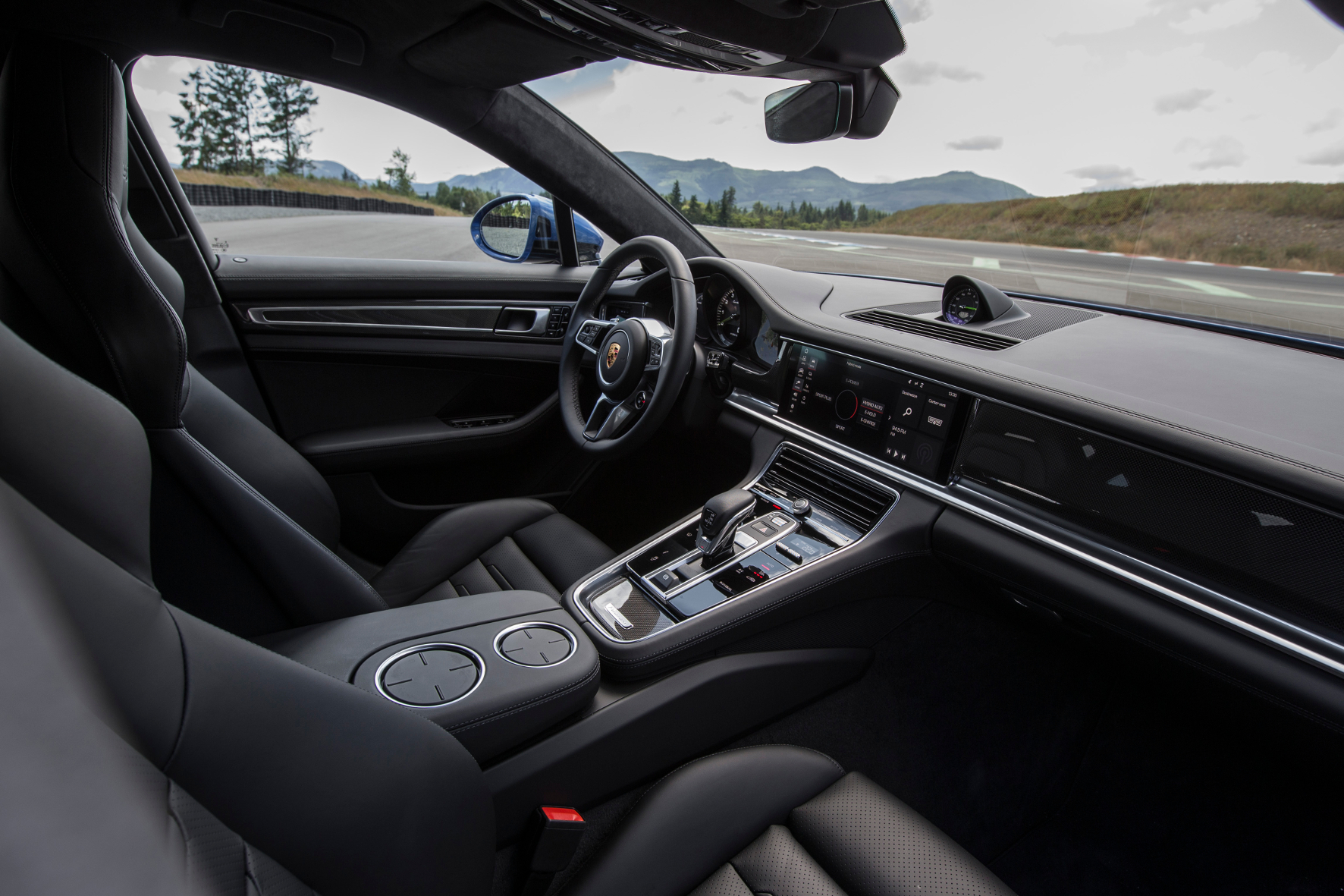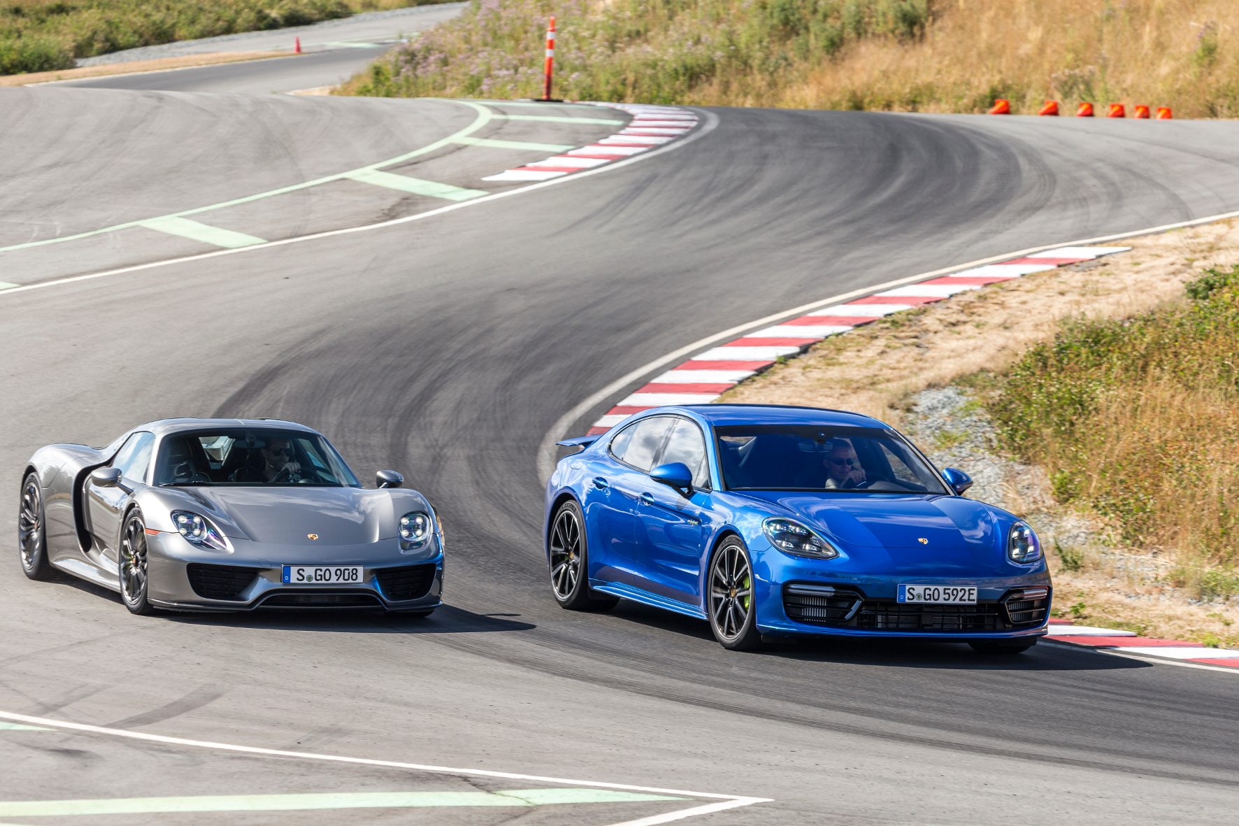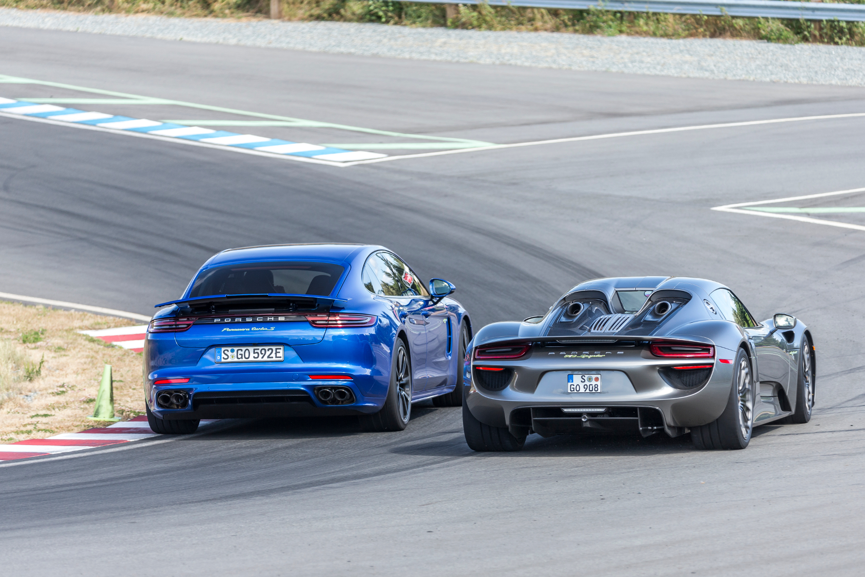 „Jetzt erleben Sie, was im Panamera wirklich steckt.“ Nach dem Kennenlernen folgen zwei schnelle Runden, bei denen Patrick das Tempo vorgibt. Tatsächlich: Der mindestens 2,3 Tonnen schwere Brocken entwickelt beim Tritt aufs Gaspedal eine berauschende Dynamik. Kein Wunder, denn der Panamera Turbo S Hybrid geht mit maximal 680 PS zu Werke und entwickelt ein Systemdrehmoment, das erst bei 850 Nm zur Neige geht. Das heißt: Der wuchtige Viertürer knackt nach 3,4 Sekunden die 100 km/h-Marke, und wenn erst bei 200 km/h Schluss sein soll, legt er weitere 8,3 Sekündchen drauf. Bei diesen Beschleunigungsorgien arbeiten der 4,0-Liter-V8-Benziner mit zwei Twin-Scroll-Turboladern und der Elektromotor fest Hand in Hand zusammen, um dem Allradantrieb die maximale Leistung zu offerieren.