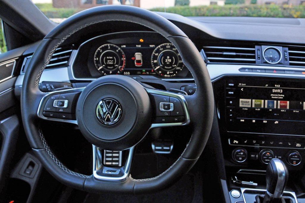Dabei bleibt der mit Harnstoff-Einspritzung gereinigte Selbstzünder stets sparsam. Obwohl ihn ein Allradantrieb zusätzlich Sprit kostet, begnügt er sich im Testdurchschnitt mit 6,9 Litern Kraftstoff. Selbst wenn er flott bewegt wird, bleibt es bei knapp über sieben Litern. Und „sportlich“ ist dem Arteon in die Wiege gelegt. Das stabile Fahrverhalten und die dank ausgesprochen direkt übersetzter Lenkung hohe Agilität machen schnelle Landstraßenfahrten zum sicheren Vergnügen.