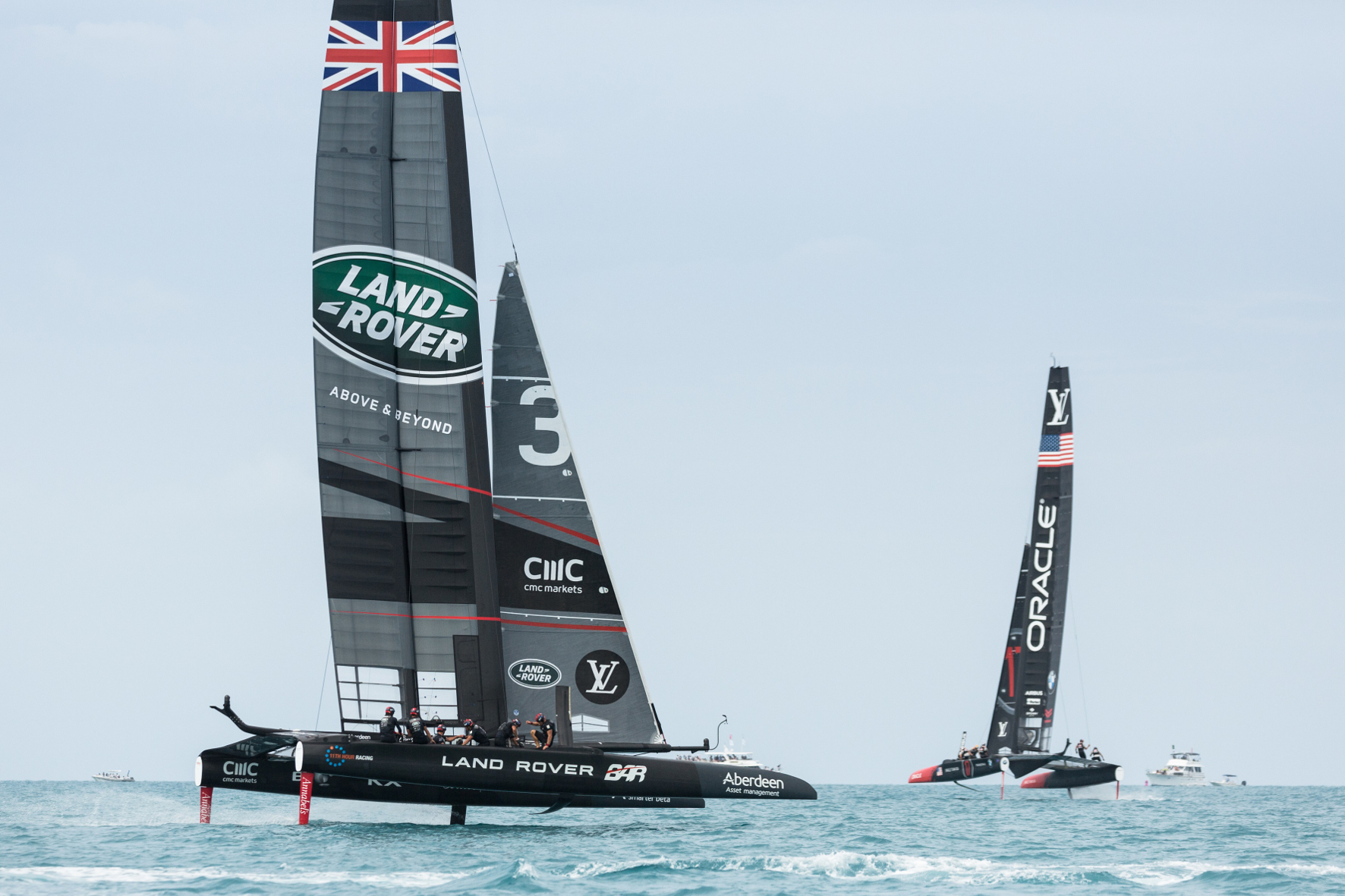 Trotz aller Bemühungen wird es wohl knapp für Sir Ben Ainslie und seine Männer. Denn die Amerikaner gelten als fast unschlagbar und haben den Cup bisher Jahr für Jahr gewonnen. Auch haben sich die Engländer auf starken Wind eingestellt und hadern jetzt mit dem lauen Lüftchen, das derzeit um das subtropisch gelegene britische Hoheitsgebiet Bermuda weht. Den Japanern waren die Engländer gewachsen. Doch beim Zweikampf mit der US-Mannschaft Oracle hatten sie es sehr schwer. Dennoch brachten sie das grüne Firmen-Logo immer wieder perfekt in Position.