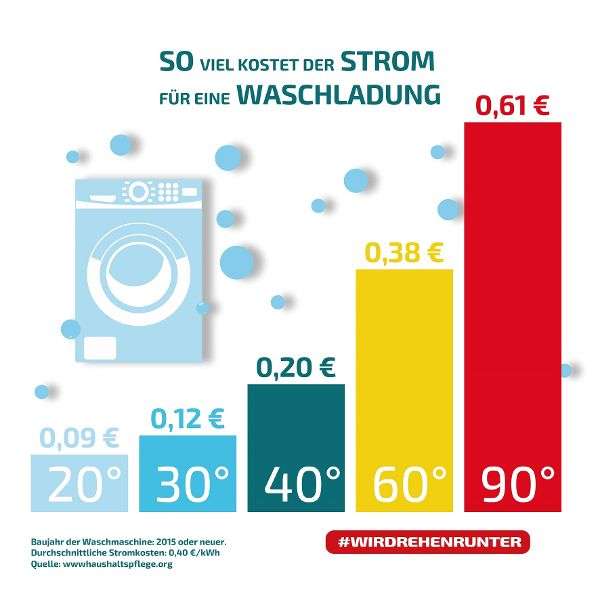 Das konkrete Ziel der Partner: die durchschnittliche Waschtemperatur aller Haushalte in Deutschland in den kommenden drei Jahren um ein Grad jährlich zu senken. Denn die Deutschen waschen mit durchschnittlich 43,18 Grad zu heiß und liegen damit über dem europäischen Durchschnitt.
