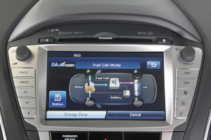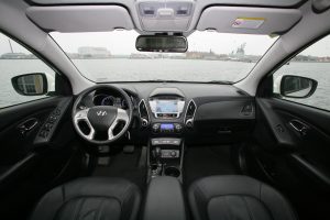 Da fühlt sich der Fahrer auf den ersten Metern wie in einem sehr sportlichen Fahrzeug, von Öko-Schaukel keine Spur. Beim Ampelstart ist der ix35 gut dabei, legt dann aber nicht wie ein Verbrenner weiter zu, sondern lässt eher nach, weshalb Tempo 100 erst nach 12,5 Sekunden erreicht ist. Genügend Durchzug hat der 1.921 Kilo schwere Wagen aber immer. Und auf der Autobahn erreicht der Wasserstoff-ix35 160 km/h Spitze. Langstreckenfahrten sind kein Problem, und das gilt auch für den Innenraum.