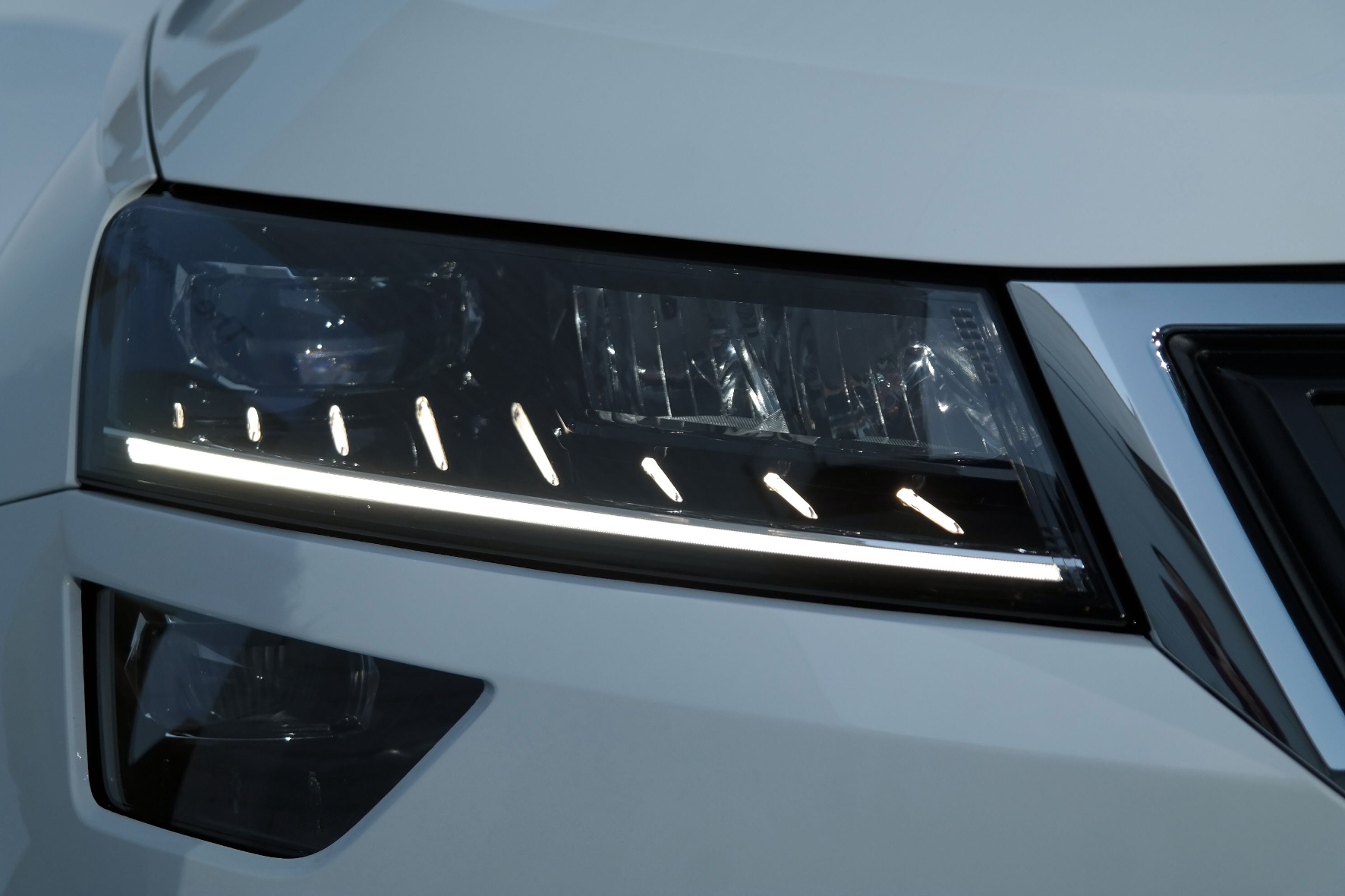 Das Konzept des Verschiebens von Klassengrenzen funktioniert beim größeren Kodiaq bestens, es dürfte auch bei seinem kleineren Bruder klappen. Denn außer einem sehr guten Platzangebot haben die Tschechen dem Karoq auch ein ansprechendes Äußeres und ein ebenso schickes wie technisch ausgereiftes Innenleben mitgegeben. Vom großen Skoda-Logo, dem dreidimensional gezeichneten Kühler und den Voll-LED-Scheinwerfern bis zu den markant geformten Heckleuchten steht der Neue frisch, straff und appetitlich auf der Straße. Wer die aktuelle Skoda-Designlinie mag, dürfte auch vom aktuellsten Vertreter der Marke angetan sein.